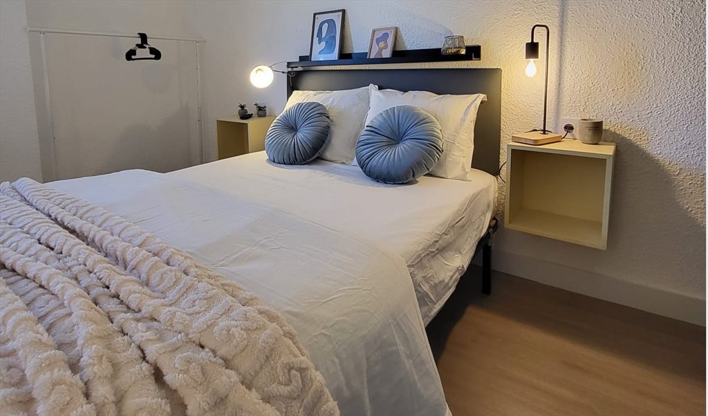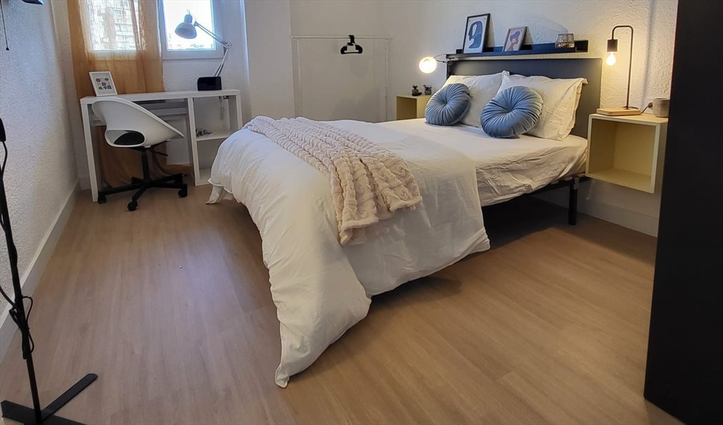 Totalmente amueblada con cama, escritorio, armario y mesita de noche.