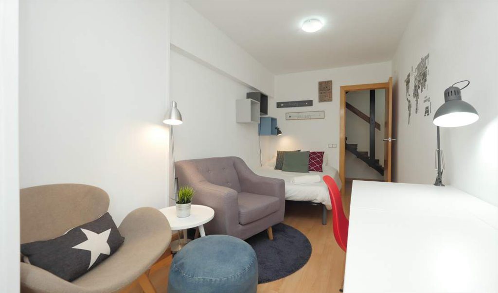 ¡Habitación individual interior en un piso con aire acondicionado y terraza al lado de la Sagrada Familia! El piso es de diseño, está recién reformado y muy cerca del Centro Comercial de Glories y muy bien comunicado con el resto de la ciudad. Tiene cama individual (convertible a doble), escritorio, armario, cerradura en la puerta y TV. El piso cuenta con una sala común enorme y de diseño, un baño, lavadora, lavavajillas y una cocina completa. Incluidos en el precio agua, luz, gas y wifi de alta velocidad. ¡La habitación te encantará!