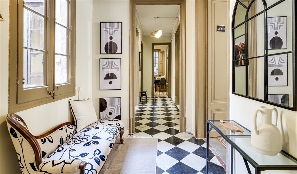 4. Kitchen 100% equipped with all new appliances. All the necessary kitchenware brand new: complete crockery, cutlery, utensils, cookware, etc.. Separate laundry area with washer-dryer. In the heart of Barcelona, “El Gótico” neighbourhood, 50 meters from “Plaza Real.”