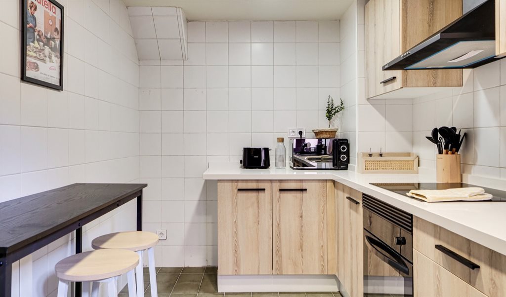 4. Kitchen 100% equipped with all new appliances. All the necessary kitchenware brand new: complete crockery, cutlery, utensils, cookware, etc.. Separate laundry area with washer-dryer. In the heart of Barcelona, “El Gótico” neighbourhood, 50 meters from “Plaza Real.”