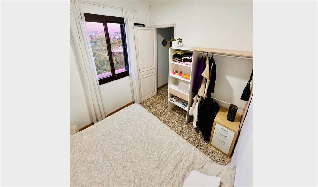Se alquila habitación doble exterior. CON MUEBLES. Cama de 150 con canapé para almacenaje, mesita de cajones y armario tipo vestidor.