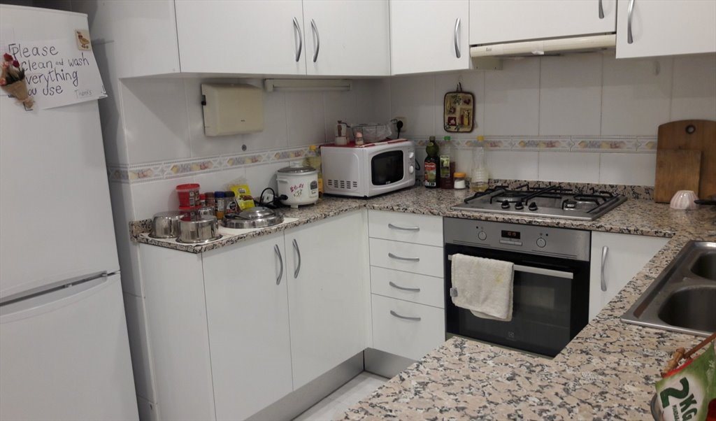 Piso confortable, cocina equipada con electrodomésticos (lavadora, microondas), galería tendedero, dos baños, calefacción, conserje etc..