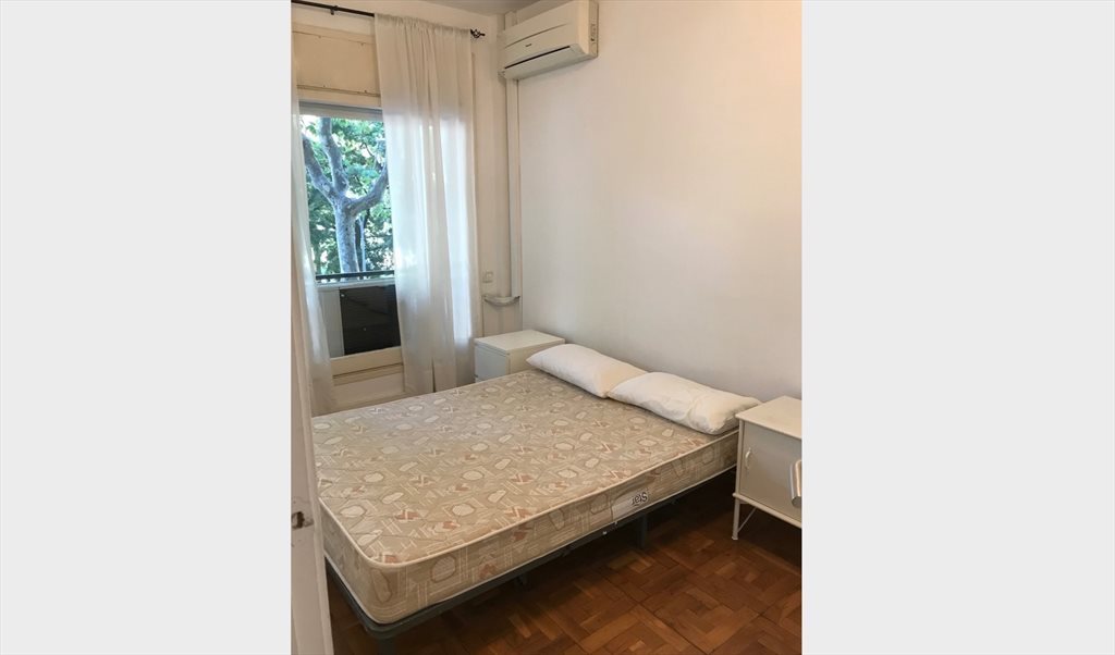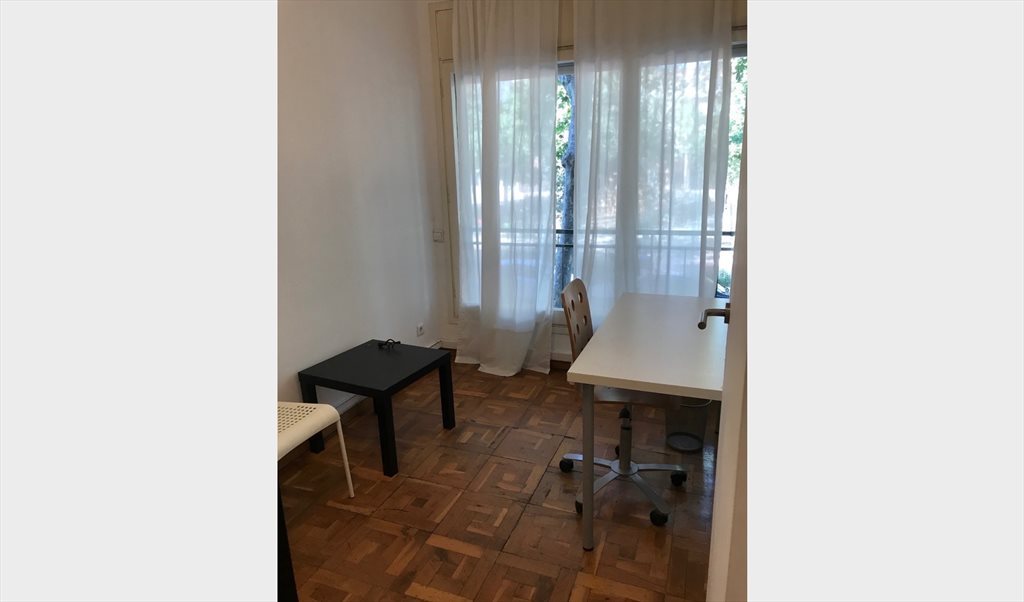 Habitación doble exterior con cama de matrimonio. Zona muy tranquila, metro Entença delante. Consta de dos espacios, uno de dormitorio y el otro de sala de estar. Gastos mensuales: 50€.