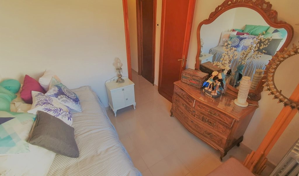 La habitación tiene cama individual y un tocador; es un espacio reducido, no cabe armario ni mucho más mobiliario, por lo que encaja mejor con alguien que no tenga muchas cosas.