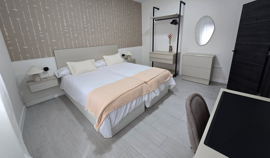 Disponemos de una habitación exterior con cama doble , armario, escritorio, lista para entrar, si el alquiler es para una pareja tendrá un coste adicional de 150€. Ofrecemos limpieza semanal de zonas comunes.