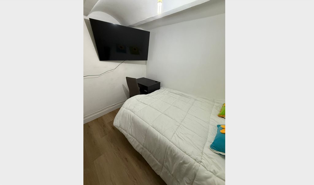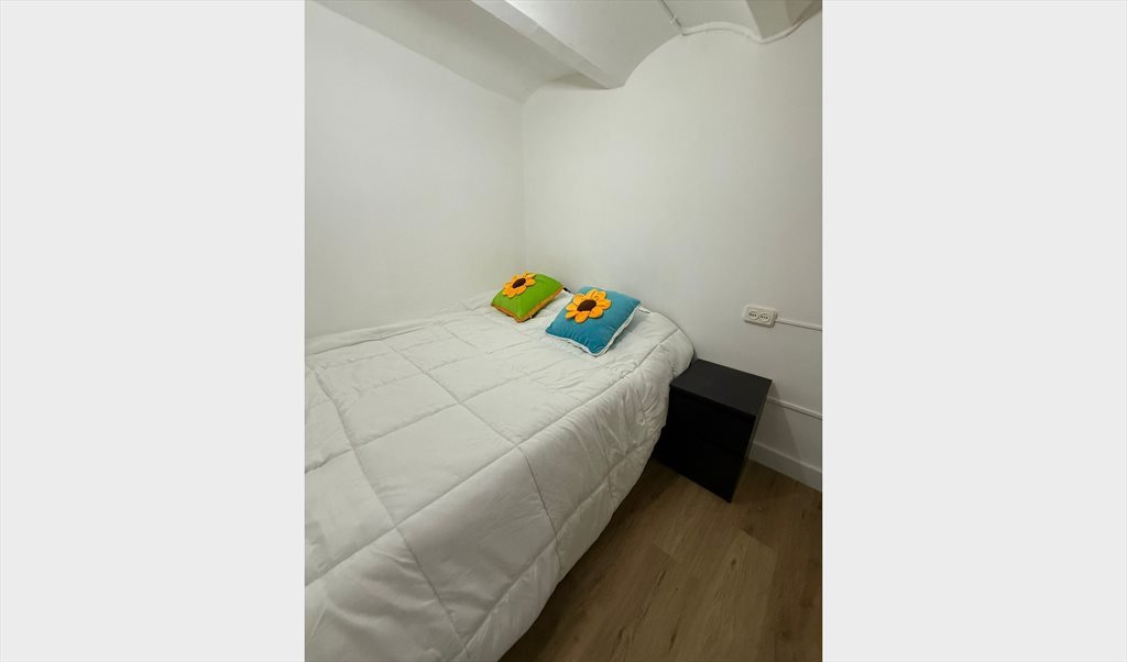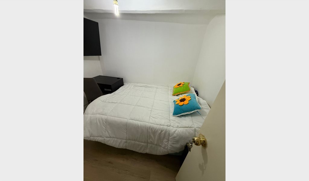 Es para dos personas, tiene cama con colchon viscoelastico, canape para almacenar cosas abajo, mesita de noche, lampara, Tv de 55 pulgadas SMART TV, escritorio con silla, armario y espejo gigante.
