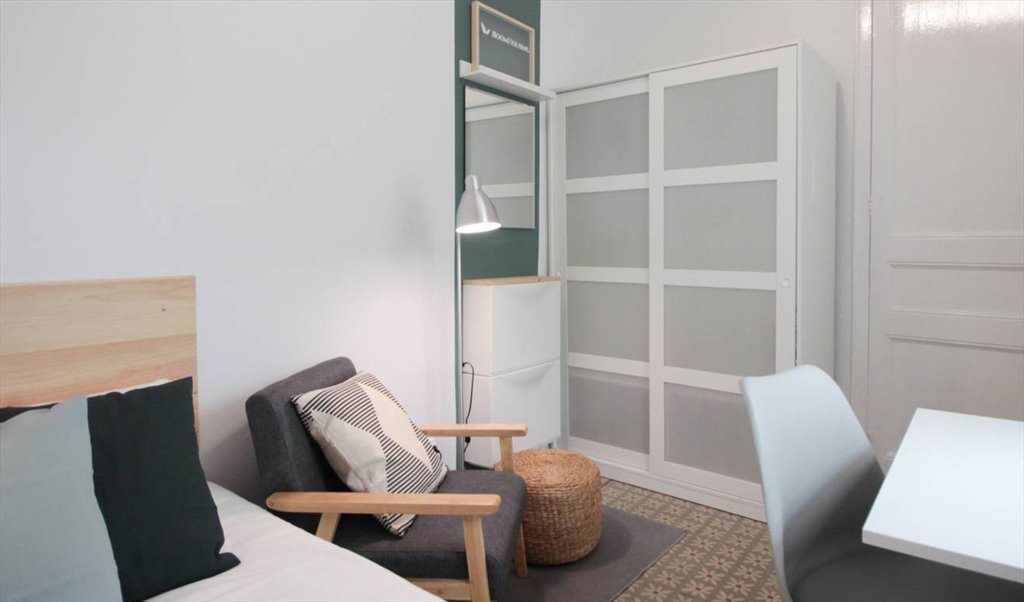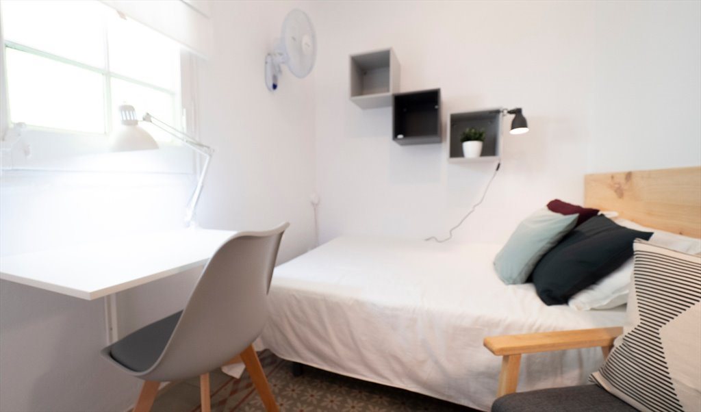 ¡Habitación individual interior en un piso con aire acondicionado y terraza al lado de la Sagrada Familia! El piso es de diseño, está recién reformado y muy cerca del Centro Comercial de Glories y muy bien comunicado con el resto de la ciudad. Tiene cama individual (convertible a doble), escritorio, armario, cerradura en la puerta y TV. El piso cuenta con una sala común enorme y de diseño, un baño, lavadora, lavavajillas y una cocina completa. Incluidos en el precio agua, luz, gas y wifi de alta velocidad. ¡La habitación te encantará!