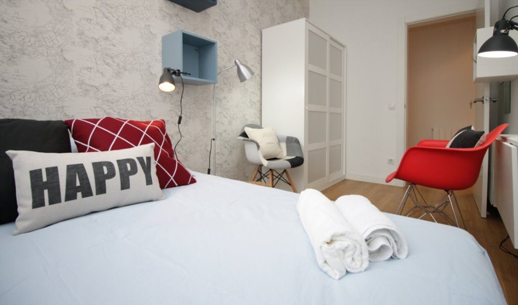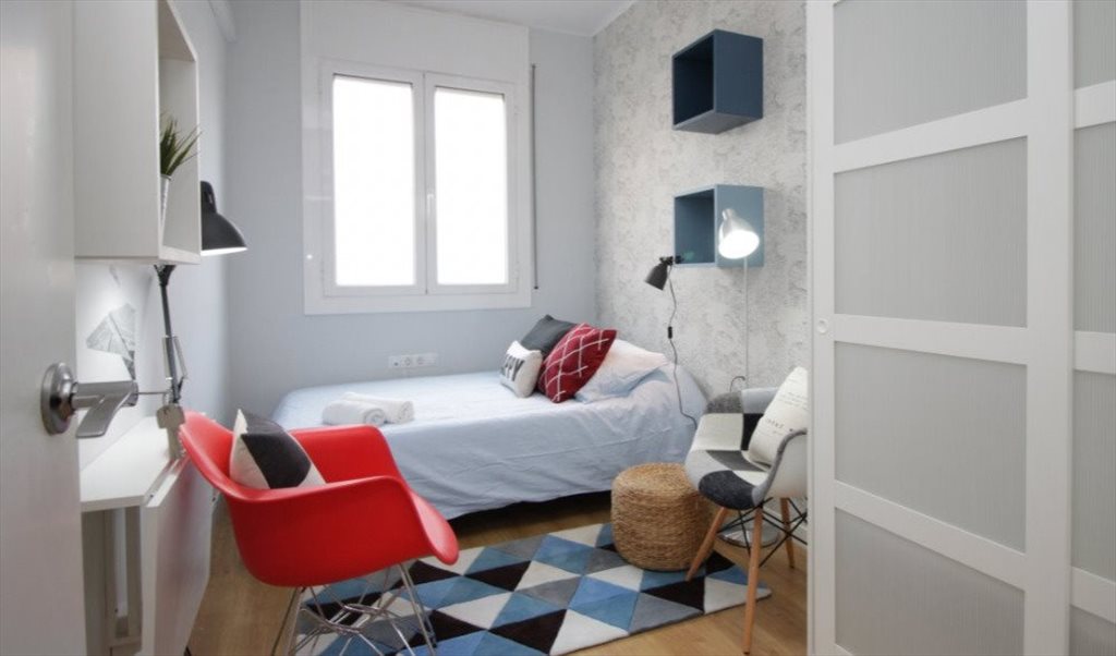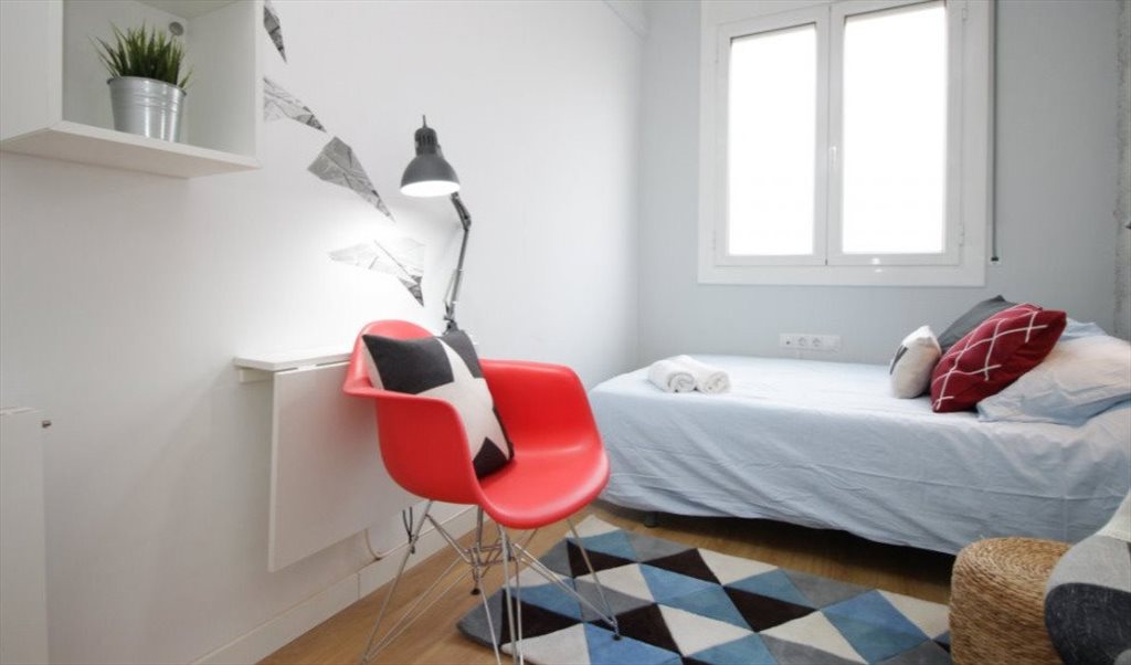 ¡Habitación individual interior en un piso con aire acondicionado y terraza al lado de la Sagrada Familia! El piso es de diseño, está recién reformado y muy cerca del Centro Comercial de Glories y muy bien comunicado con el resto de la ciudad. Tiene cama individual (convertible a doble), escritorio, armario, cerradura en la puerta y TV. El piso cuenta con una sala común enorme y de diseño, un baño, lavadora, lavavajillas y una cocina completa. Incluidos en el precio agua, luz, gas y wifi de alta velocidad. ¡La habitación te encantará!