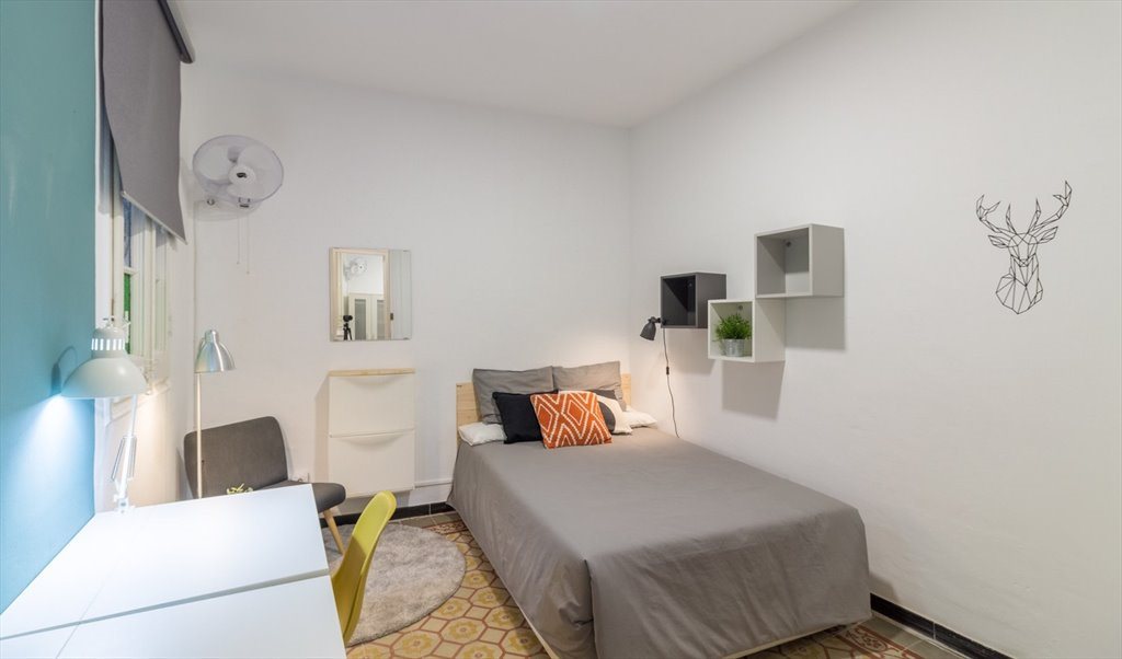¡Es una habitación interior, muy luminosa, con cama doble en un piso recientemente reformado en el barrio de Gracia! El piso es de diseño y está muy bien comunicado con el resto de la ciudad por metro y buses. La habitación tiene cama doble, escritorio, silla, butacas, reposapiés, armario, cerradura en la puerta y ventilador. El piso cuenta con una sala común con TV, una cocina completa, lavadora y secadora. Incluidos en el precio agua, luz, gas, Wifi de alta velocidad y servicio de limpieza en las zonas comunes una vez por semana. ¡La habitación te encantará!
