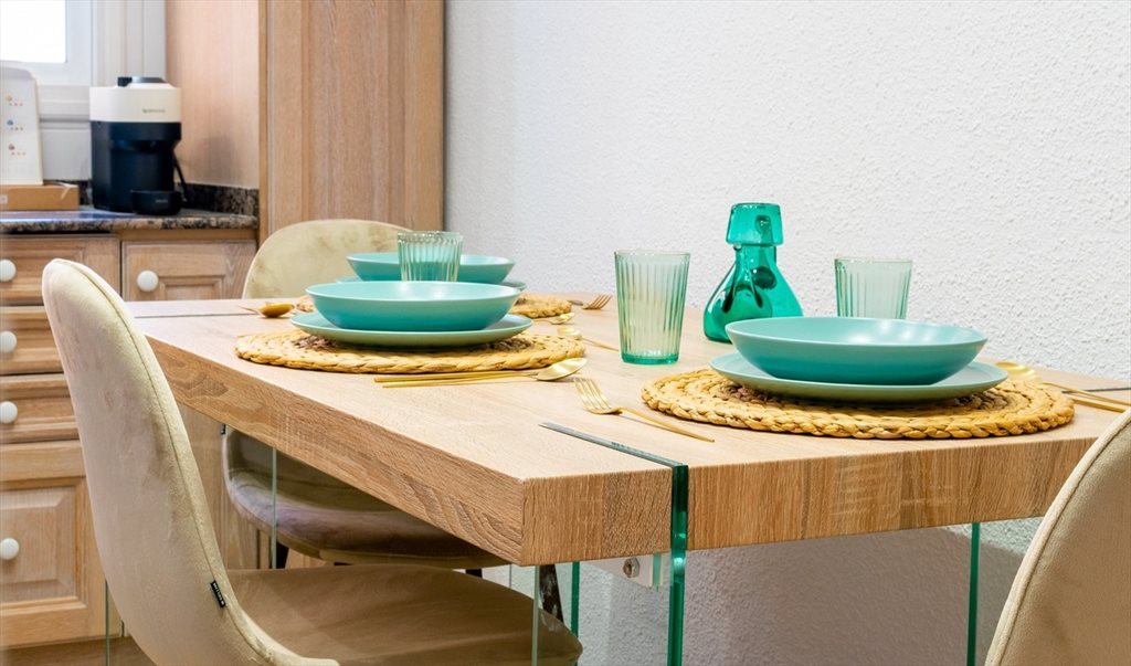 4. Kitchen 100% equipped with all new appliances. All the necessary kitchenware brand new: complete crockery, cutlery, utensils, cookware, etc.. Separate laundry area with washer-dryer.