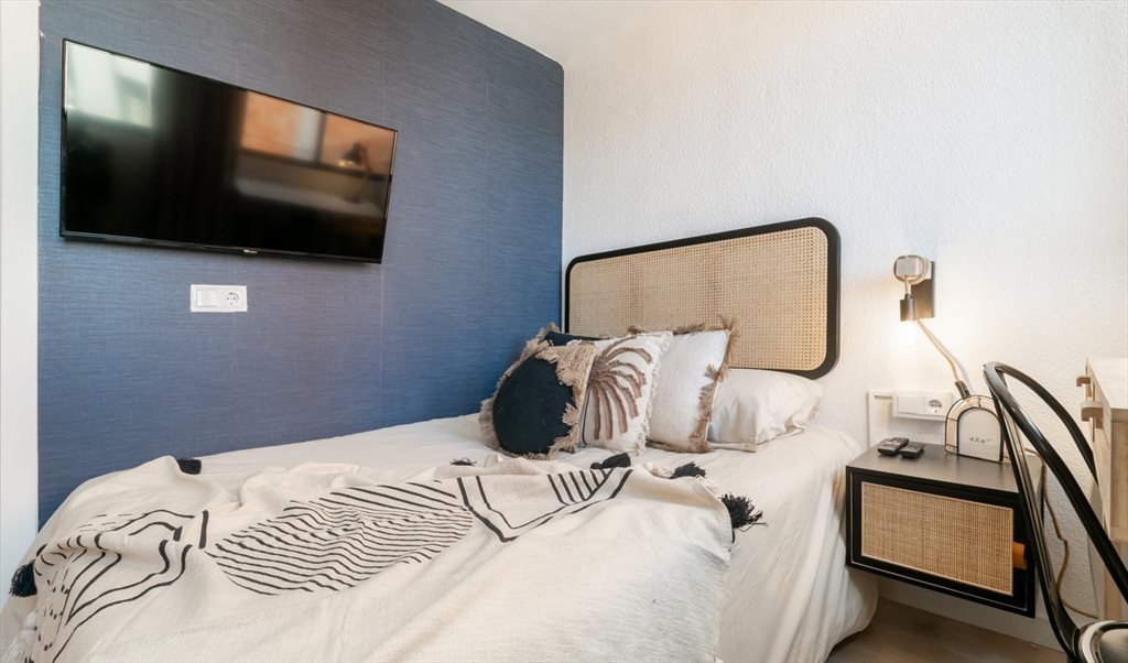2. Complete double room: bed 150x190 with underneath storage, Smart TV, double closet, desk. Includes pillows, cushions, comforter, sheets, hangers, clothes basket, wastebasket, and towels (all brand new). The room has a ceiling fan with different powers and a separate lock with external key and latch on the inside.