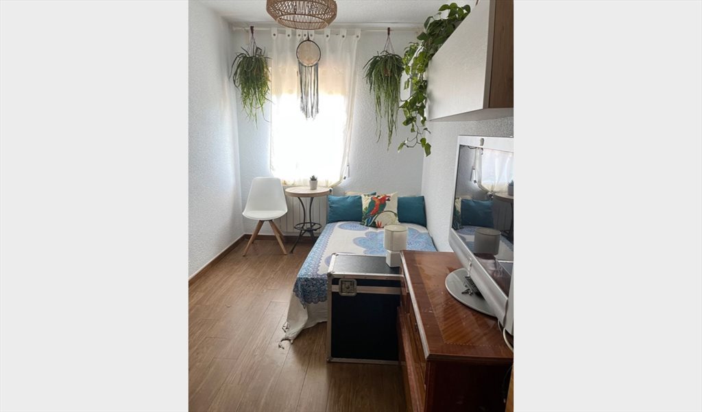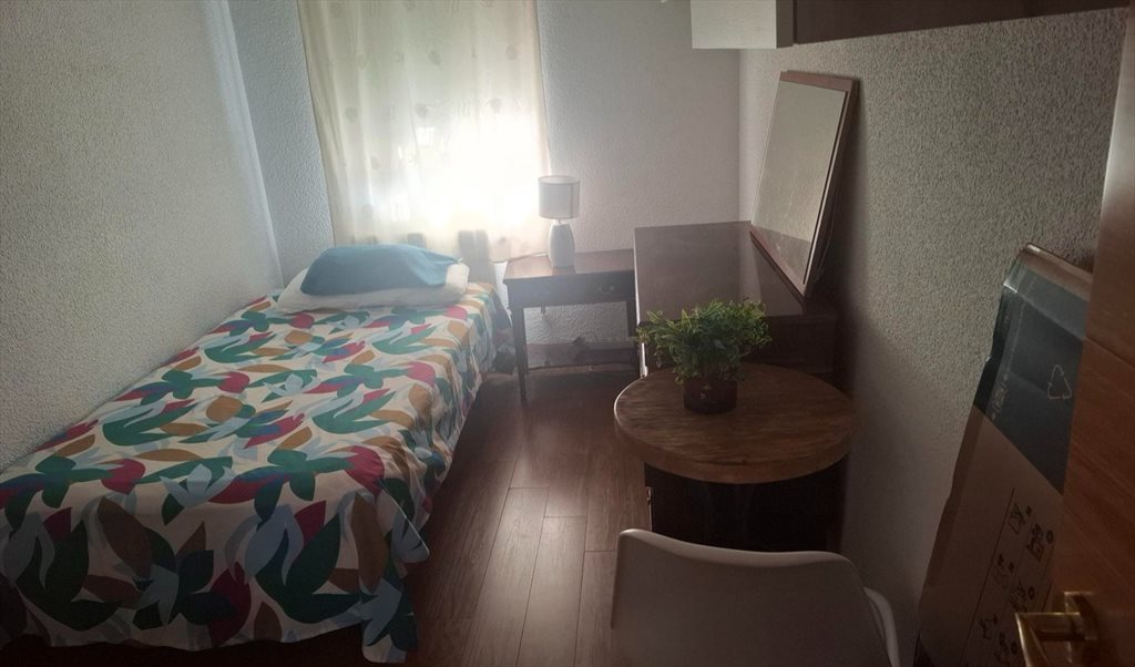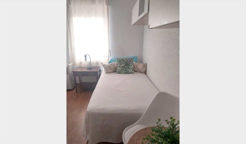 Exclusivamente para mujer que no fume en casa y trabaje fuera, habitación completamente amueblada y equipada con aire acondicionado portátil y calefacción de gas y radiador eléctrico en piso con tres habitaciones y un cuarto de baño, ascensor a pie de calle, derecho a cocina, frigorífico, lavadora, wifi y tendedero