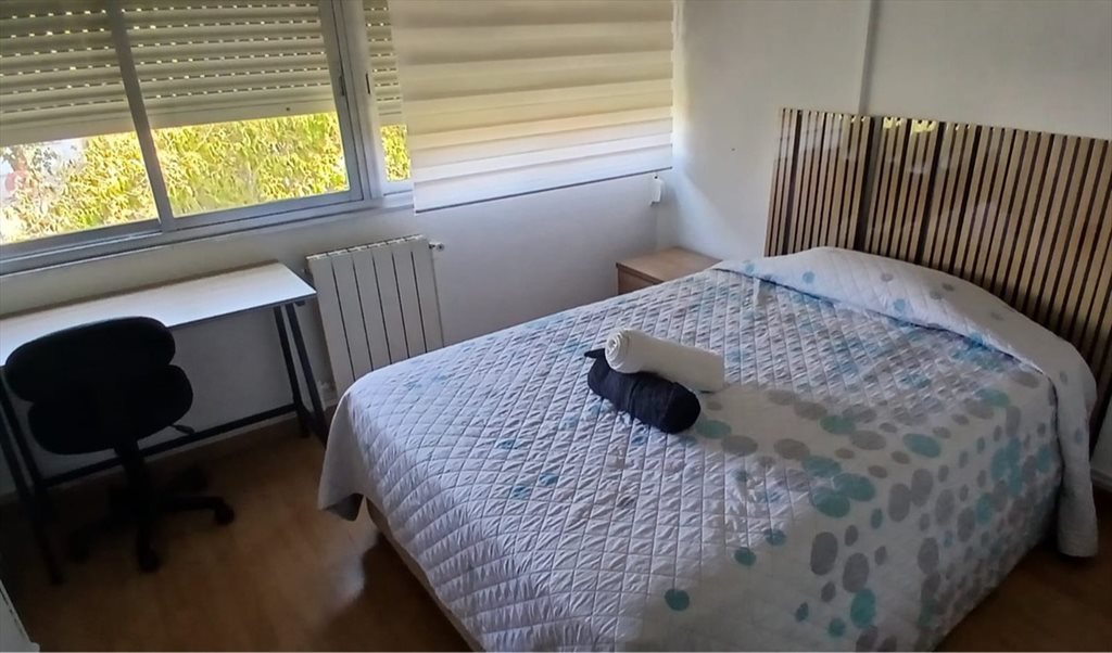 Habitacion luminosa y amplia. Para 1 persona con cama doble, armario, canapé, nevera, mesa de estudio con silla.