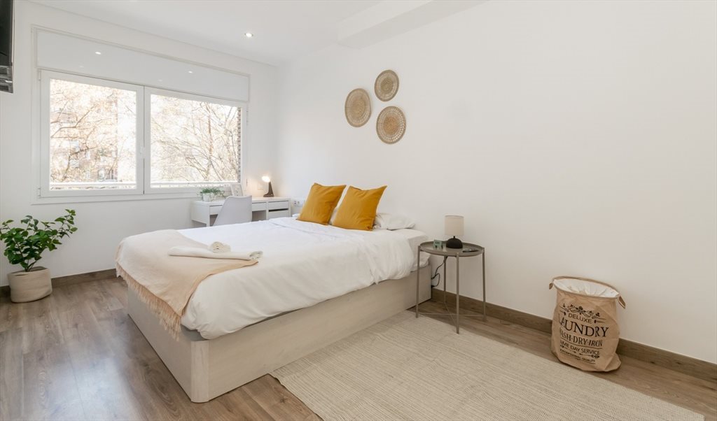 SUPER BRIGHT, NEWLY RENOVATED AND WITH ALL NEW FURNITURE. Located in Les Corts neighbourhood, 3 mins. walking from Barcelona's railways that connect with the whole city and in front of a bus stop and the bicycle lane.