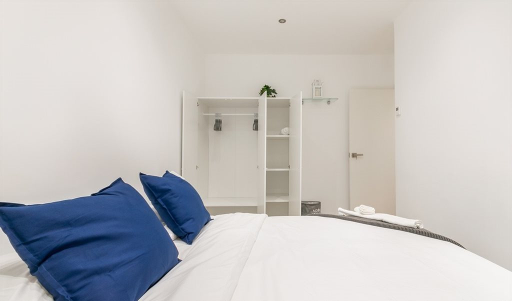 2. Complete double room: folding bed with storage space 150x190, Smart TV, fourth door build-in closet with security box, and desk. Includes pillows, cushions, comforter, sheets, hangers, wastebasket, and towels (all brand new). The room has air conditioning and heater.