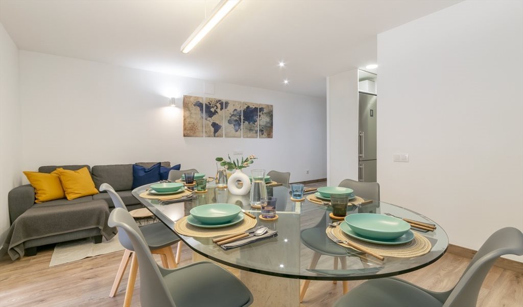 SUPER BRIGHT, NEWLY RENOVATED AND WITH ALL NEW FURNITURE. Located in Les Corts neighbourhood, 3 mins. walking from Barcelona's railways that connect with the whole city and in front of a bus stop and the bicycle lane.