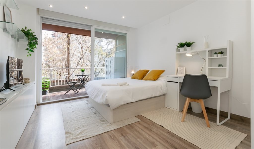 SUPER BRIGHT, NEWLY RENOVATED AND WITH ALL NEW FURNITURE. Located in Les Corts neighbourhood, 3 mins. walking from Barcelona's railways that connect with the whole city and in front of a bus stop and the bicycle lane.