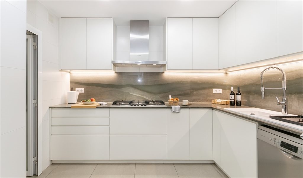 4. Kitchen 100% equipped with all new appliances. All the necessary kitchenware brand new: complete crockery, cutlery, utensils, cookware, etc.. It has all the necessary appliances: oven, microwave, dishwasher, washing machine, tumble dryer, coffee machine, kettle, toaster, etc.