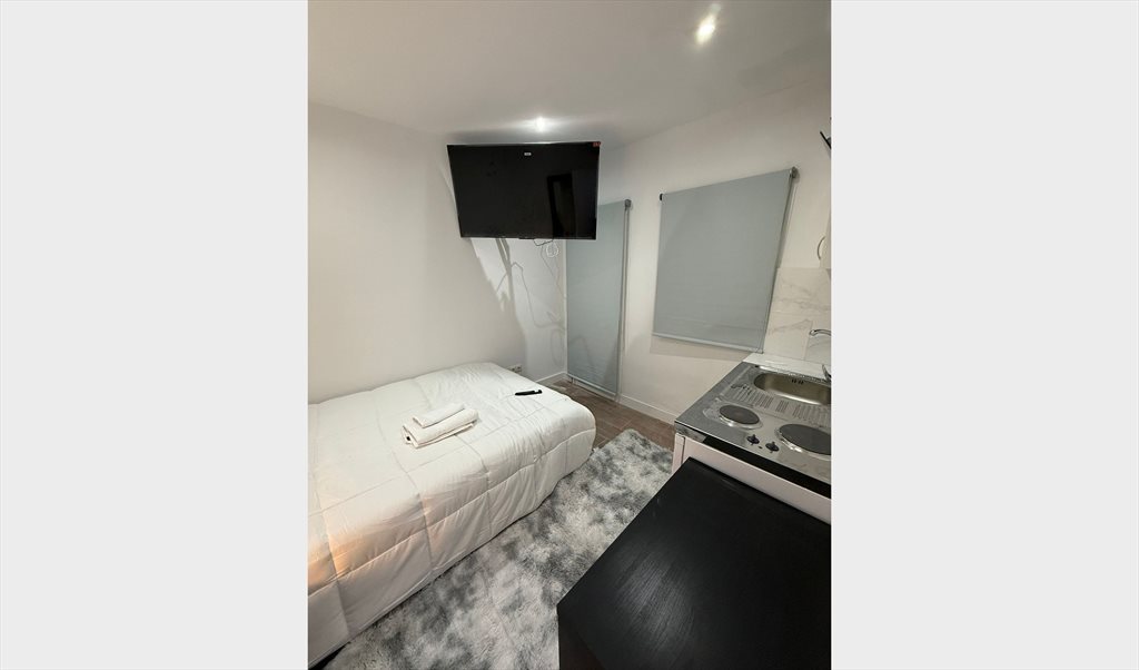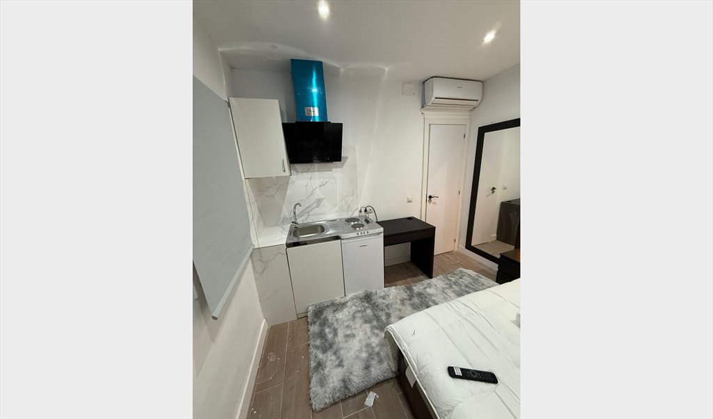 Se alquila loft con cocina y baño privado, canape 135 con zona de almacenaje de ropa, escritorio con silla, cocina con nevera y micoondas, lavabo con ducha y lavadora con secadora incorporada.