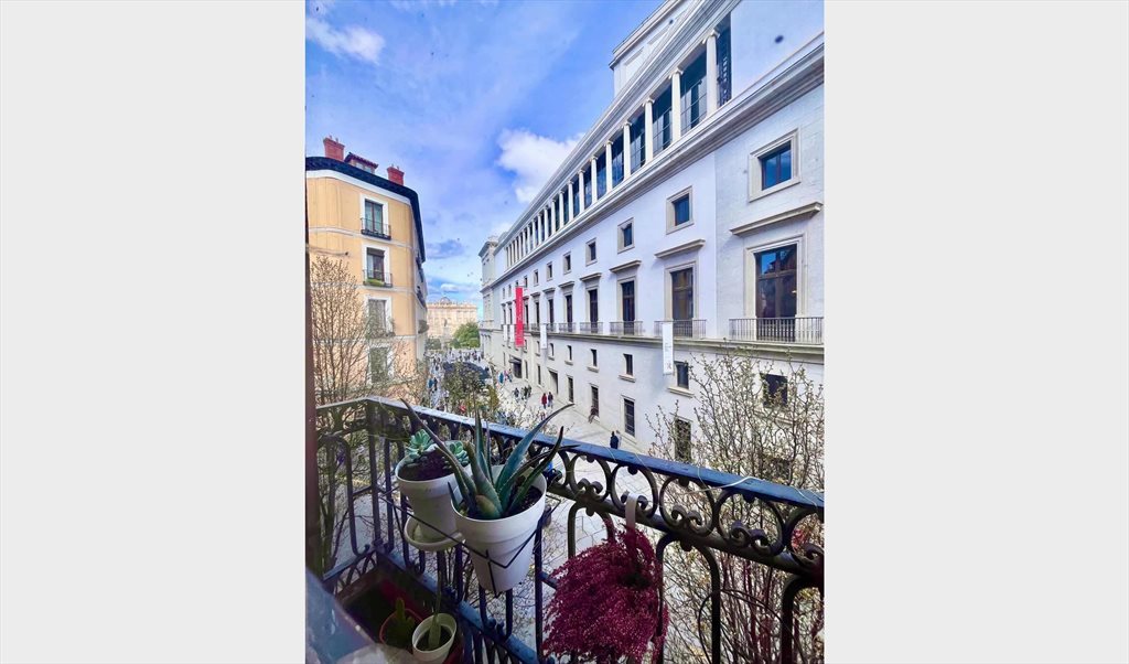 Con cama de matrimonio y vistas espectaculares al Palacio Real y Teatro Real.