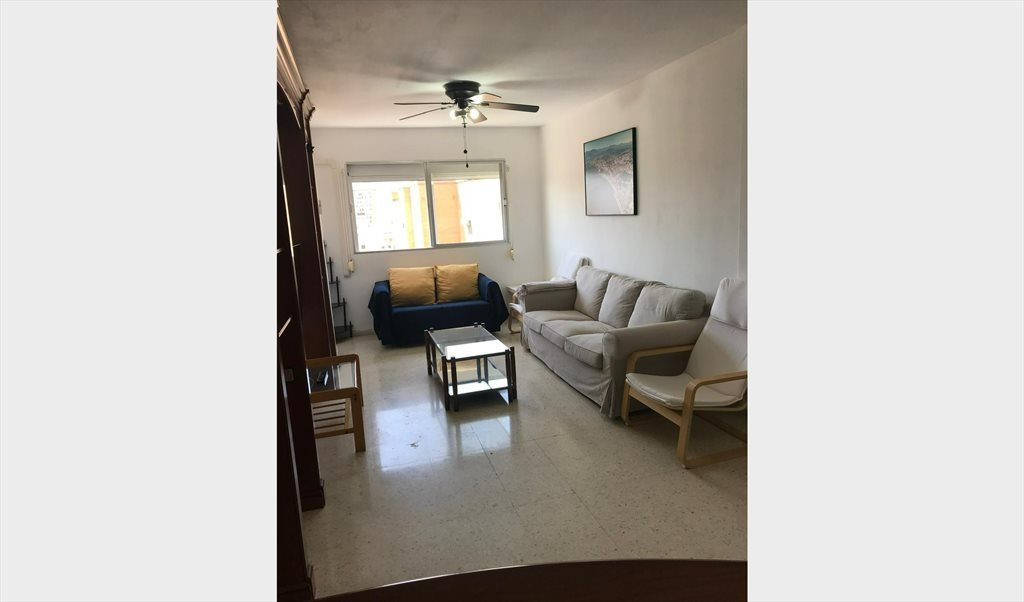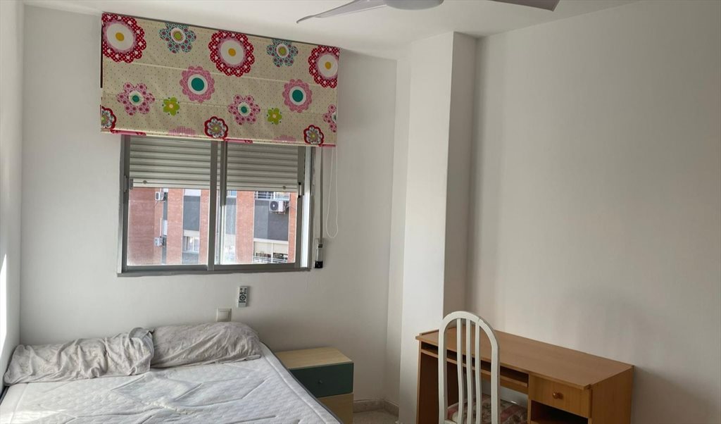 Habitación muy luminosa a calle sin salida y jardines, muy tranquila. Dispone de cama doble, mesita de noche, escritorio, cajonera y 2 armarios. Ventilador en techo con mando a distancia. Toma de TV. Wifi.