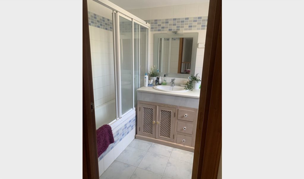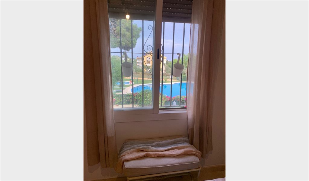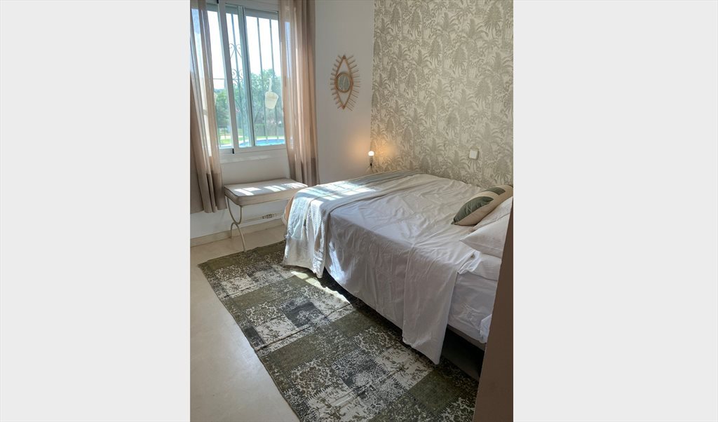La habitación es amplia y tranquila, con cama doble, baño privado y vistas a la piscina. Vivo en una zona residencial muy segura y familiar, al lado de un colegio. A solo dos minutos andando tienes supermercados (Lidl y Mercadona), la parada de bus, y el campo donde paseo cada mañana con mi border collie, que es muy sociable.
