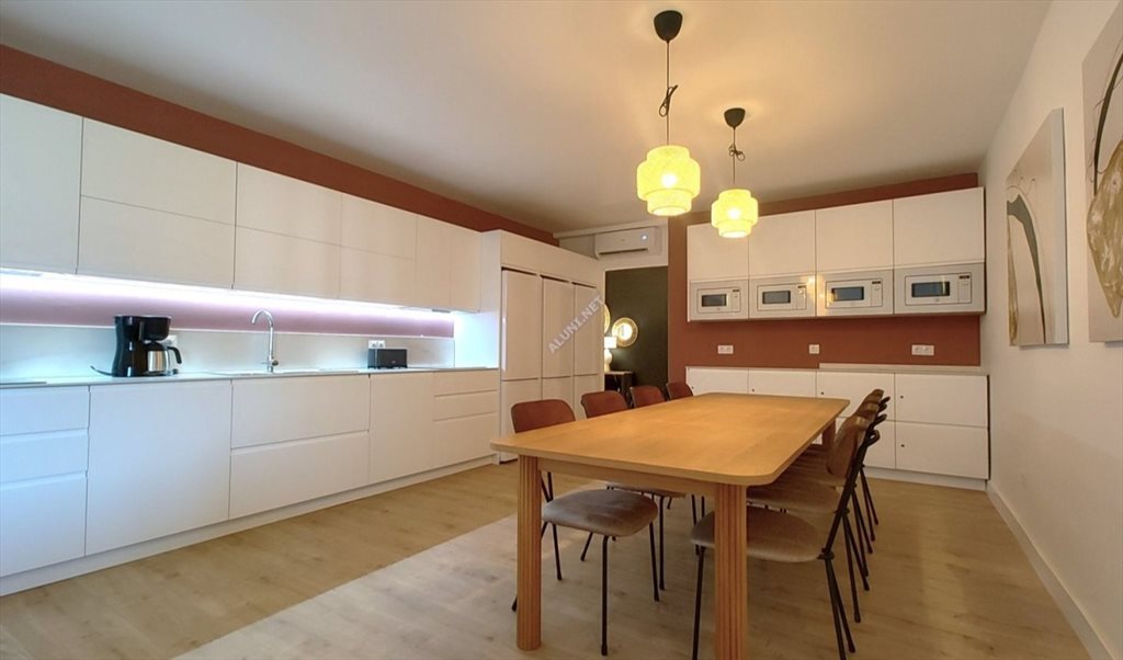 El piso está completamente equipado y dispone de: Internet, Aire acondicionado, TV, 3 frigoríficos, 2 lavadoras, 1 secadora, 2 placas de cocina, 4 microondas, Freidora de aire, Hervidor de agua, Tostadora, Vajilla, 2 Hornos, 2 Cafeteras, 2 Lavavajillas, 8 taquillas con llave, etc.