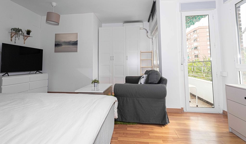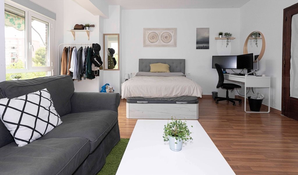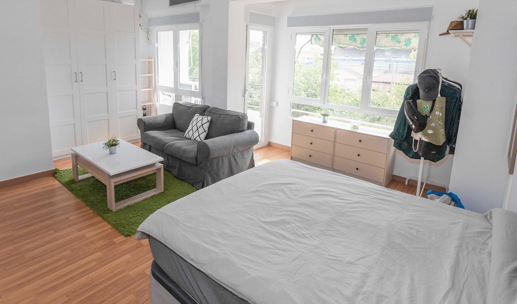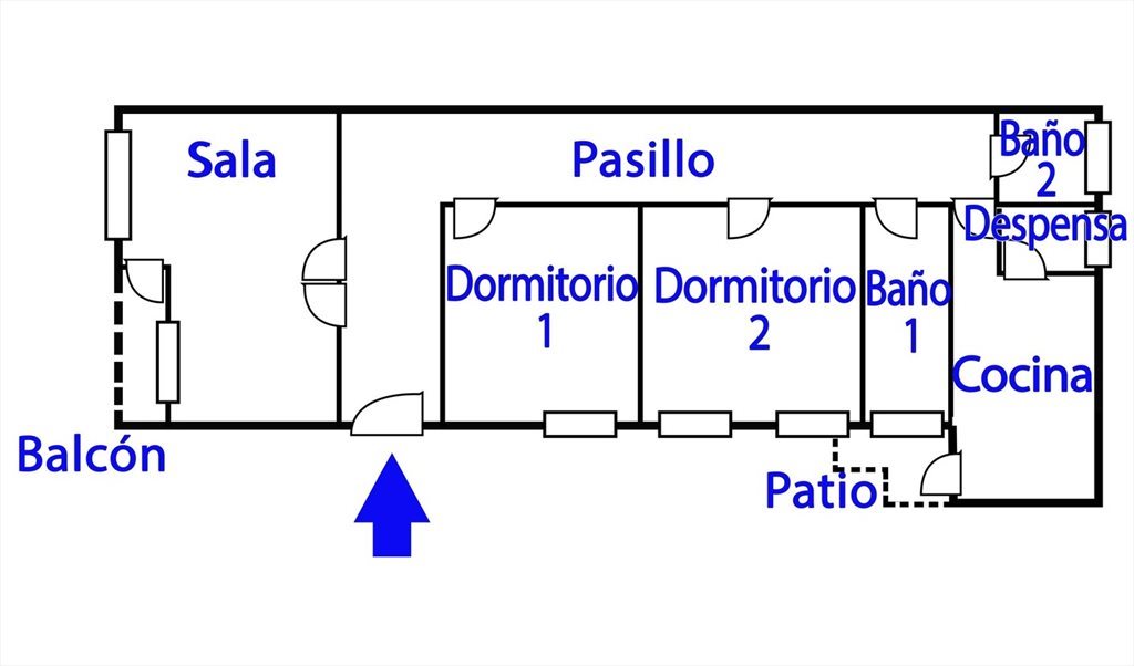 Se alquila la habitacion más grande de la casa. Es una habitación con su sofá, su aire acondicionado, su cama doble, terraza propia y escritorio. En el plano se llama "sala". El piso tiene tres habitaciones. Hay dos baños completos y aparato de aire acondicionado en todas las habitaciones.