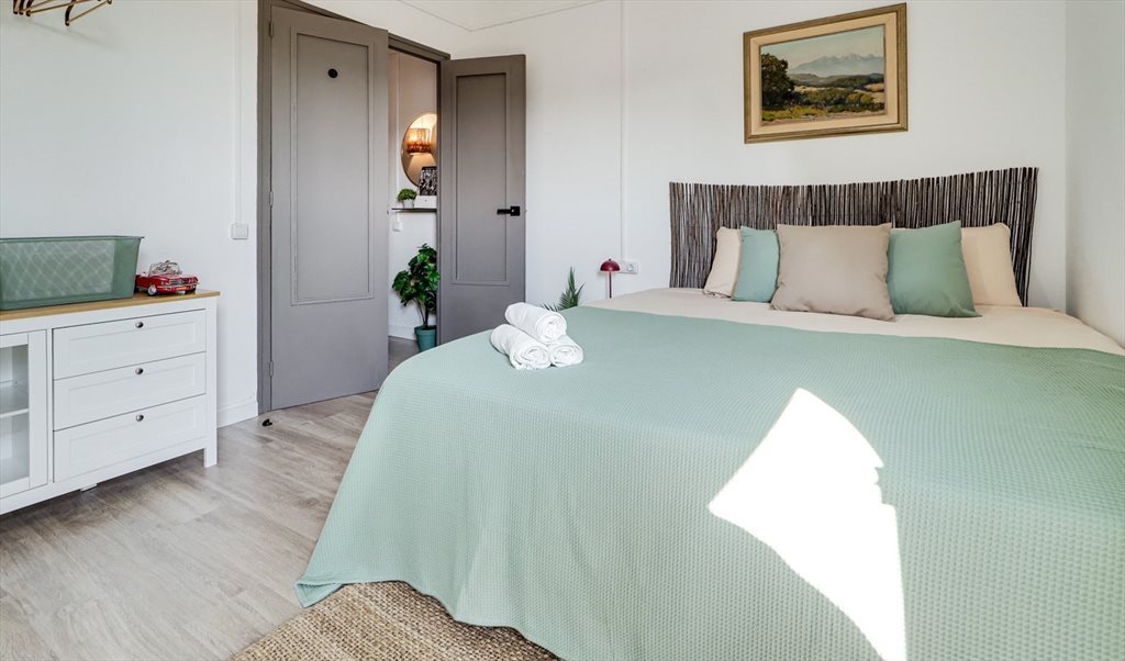 2. Complete room: bed with folding sofa, Smart TV, closet, desk. Includes pillows, cushions, comforter, sheets, hangers, wastebasket, and towels (all brand new). The room has a separate lock with external key and latch on the inside. Private terrace, shared between 2 rooms.