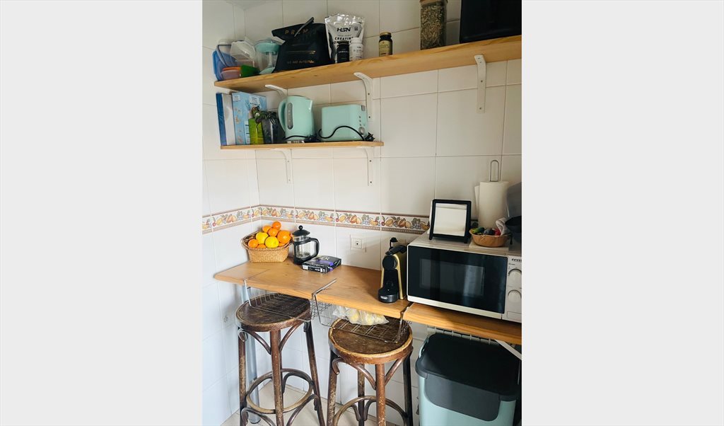 El piso se encuentra en el barrio de a Media Legua (Moratalaz) y está muy cerca del centro, a pocos minutos del Retiro y súper bien conectado con autobuses y el metro Estrella.