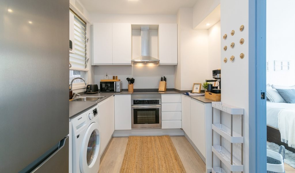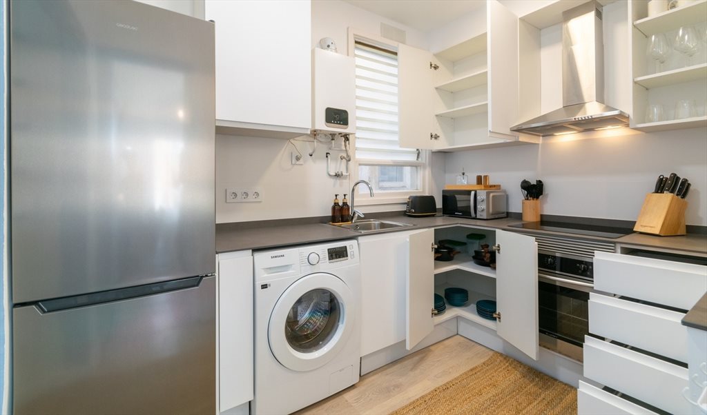4. Kitchen 100% equipped with all new appliances. All the necessary kitchenware brand new: complete crockery, cutlery, utensils, cookware, etc.. Separate laundry area with washer-dryer.
