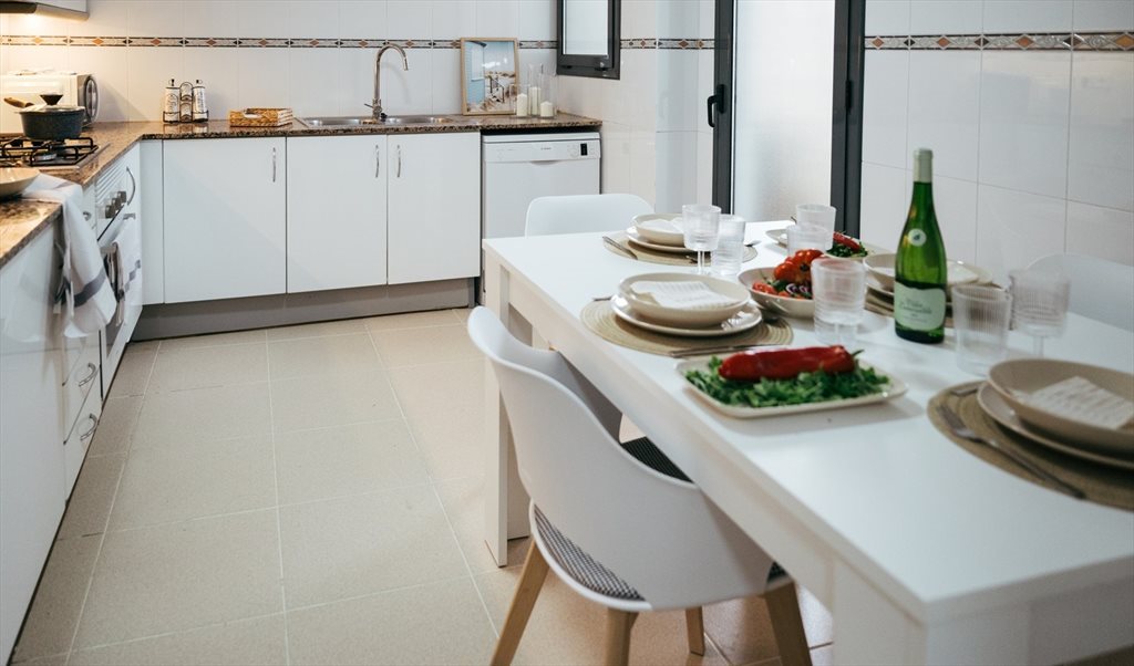 3. Kitchen 100% equipped with all new appliances. All the necessary kitchenware brand new: complete crockery, cutlery, utensils, cookware, etc.. Separate laundry area with washer-dryer and sink.
