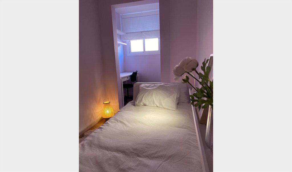 Habitación con mucha luz, cama individual, decorada у amueblada para ser un lugar agradable donde dormir y relajarte. Buscamos una persona que sea muy independiente y que le guste la tranquilidad.