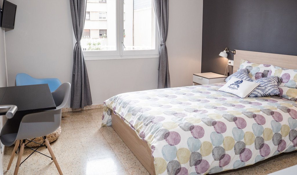 ¡Habitación individual interior en un piso con aire acondicionado y terraza al lado de la Sagrada Familia! El piso es de diseño, está recién reformado y muy cerca del Centro Comercial de Glories y muy bien comunicado con el resto de la ciudad. Tiene cama individual (convertible a doble), escritorio, armario, cerradura en la puerta y TV. El piso cuenta con una sala común enorme y de diseño, un baño, lavadora, lavavajillas y una cocina completa. Incluidos en el precio agua, luz, gas y wifi de alta velocidad. ¡La habitación te encantará!