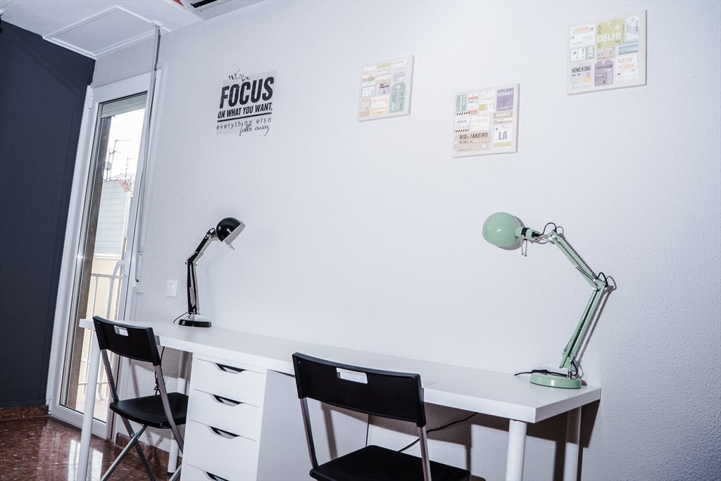 ¡Habitación individual interior en un piso con aire acondicionado y terraza al lado de la Sagrada Familia! El piso es de diseño, está recién reformado y muy cerca del Centro Comercial de Glories y muy bien comunicado con el resto de la ciudad. Tiene cama individual (convertible a doble), escritorio, armario, cerradura en la puerta y TV. El piso cuenta con una sala común enorme y de diseño, un baño, lavadora, lavavajillas y una cocina completa. Incluidos en el precio agua, luz, gas y wifi de alta velocidad. ¡La habitación te encantará!