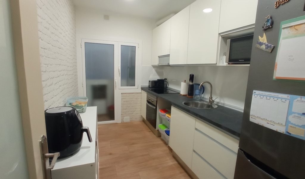 El piso cuenta con varias zonas comunes: una cocina totalmente equipada, comedor, baños y un balcón amplio y muy soleado, perfecto para relajarse.