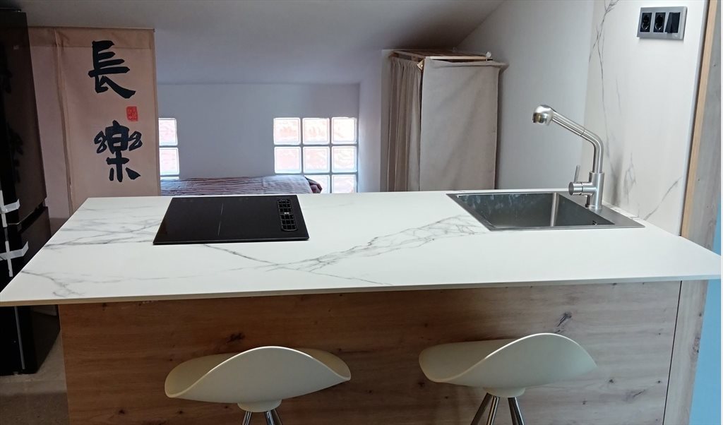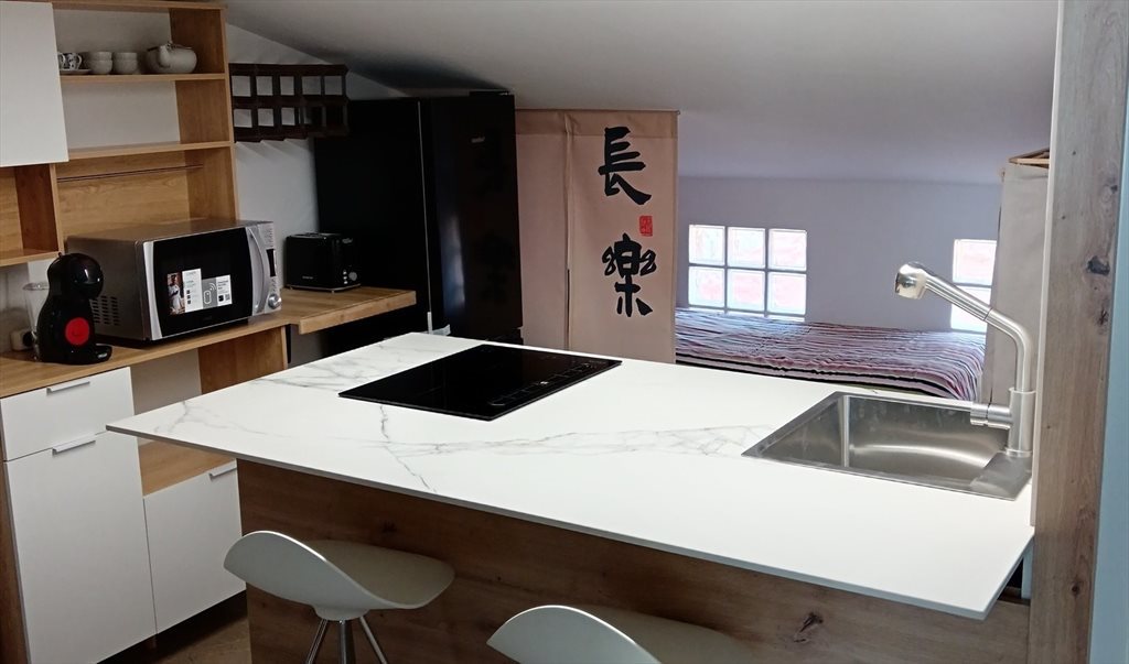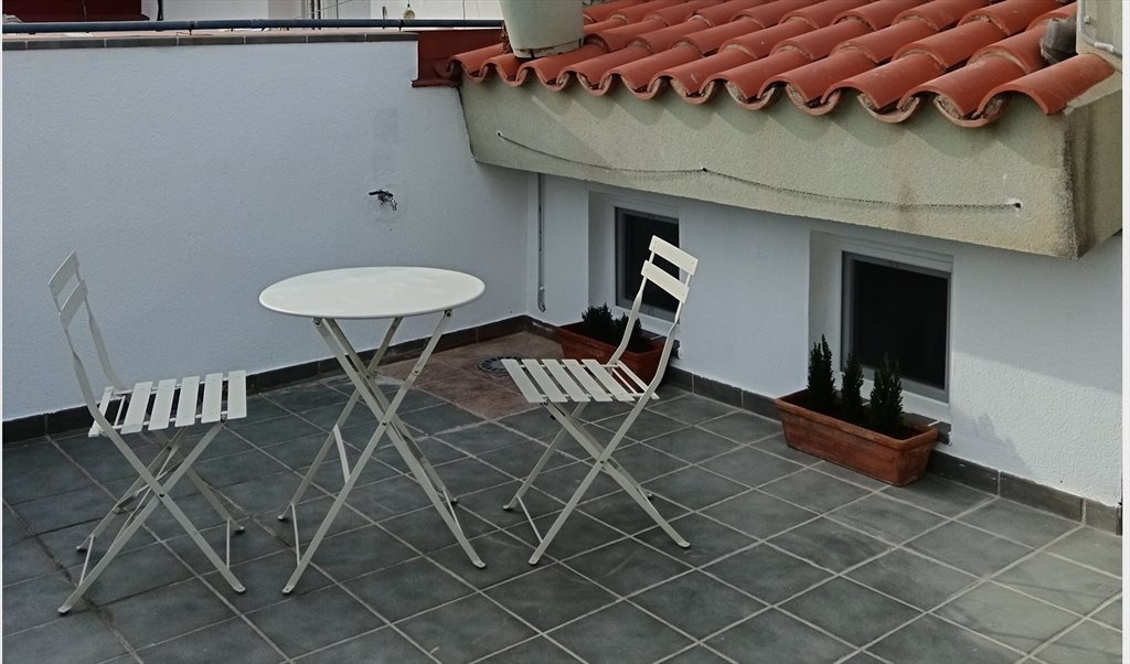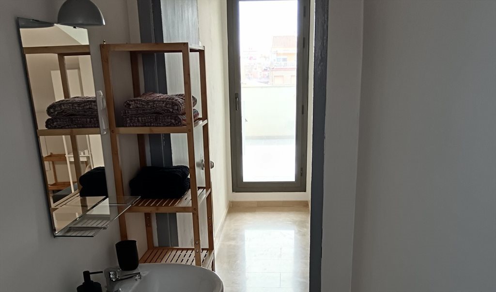 Baño y office completamente equipados para uso privado. El precio incluye todos los servicios incluido wifi, también ropa de cama y baño. El espacio dispone de acceso a una terraza exclusiva de 16m2.