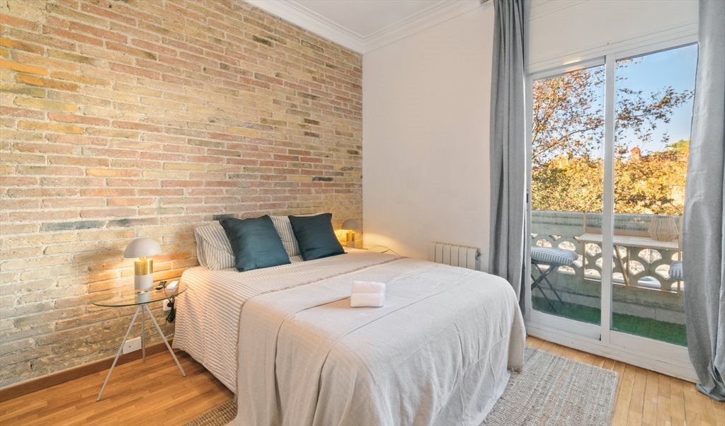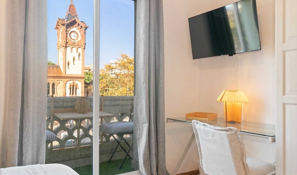 PRIVATE BALCONY, SUPER BRIGHT, NEWLY RENOVATED AND WITH ALL NEW FURNITURE. Located in Barcelona INCLUDES: 1. All supplies water, electricity, gas, wifi and weekly cleaning 2. Complete room: Private bacony with chair, 150cm bed with folding sofa, Smart TV, closet, desk, mini fridge and coffee machine. Includes pillows, cushions, comforter, sheets, hangers, wastebasket, and towels all brand new. The room