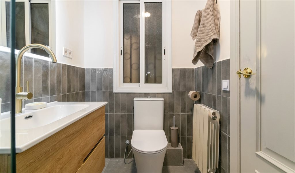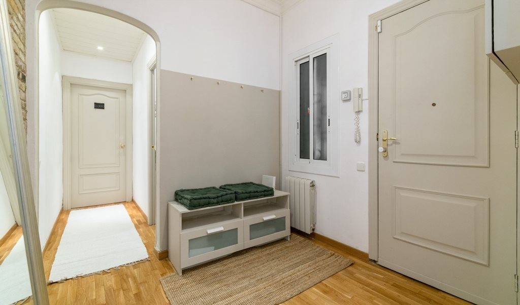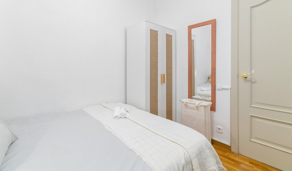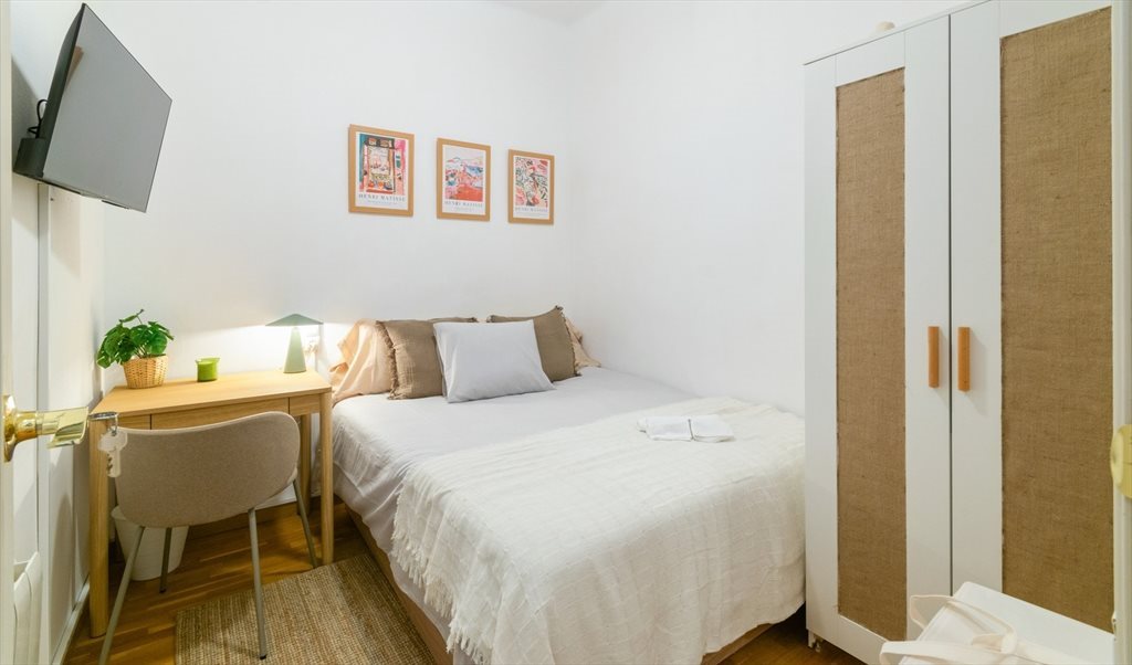 PRIVATE BALCONY, SUPER BRIGHT, NEWLY RENOVATED AND WITH ALL NEW FURNITURE. Located in Barcelona INCLUDES: 1. All supplies water, electricity, gas, wifi and weekly cleaning 2. Complete room: Private bacony with chair, 150cm bed with folding sofa, Smart TV, closet, desk, mini fridge and coffee machine. Includes pillows, cushions, comforter, sheets, hangers, wastebasket, and towels all brand new. The room
