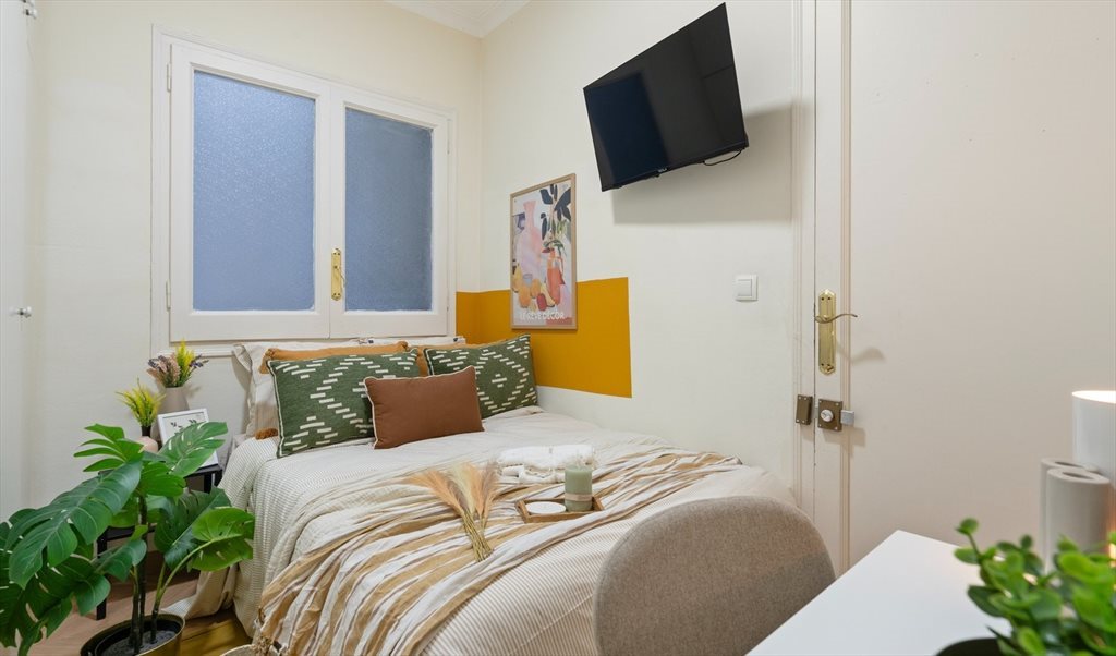 Modern and spacious double bedroom featuring a comfortable double bed, TV, desk and wardrobe. Fully furnished and designed for both comfort and functionality, the room offers a bright and pleasant atmosphere, ideal for relaxing, studying or working from home in a well-maintained shared apartment.