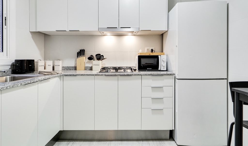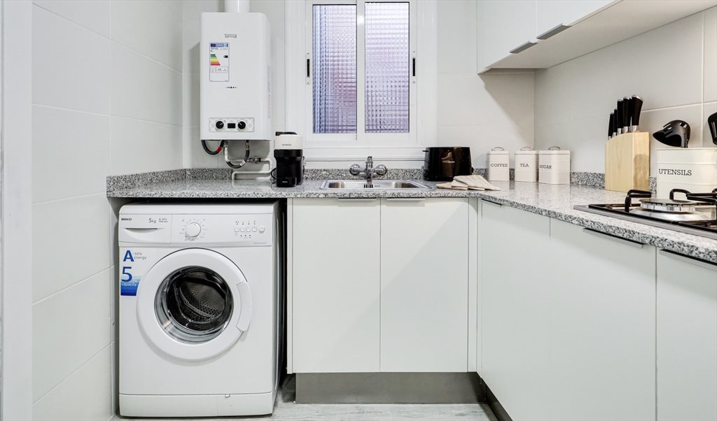 4. Kitchen 100% equipped with all new appliances. All the necessary kitchenware brand new: complete crockery, cutlery, utensils, cookware, etc.. Separate laundry area with washer-dryer.