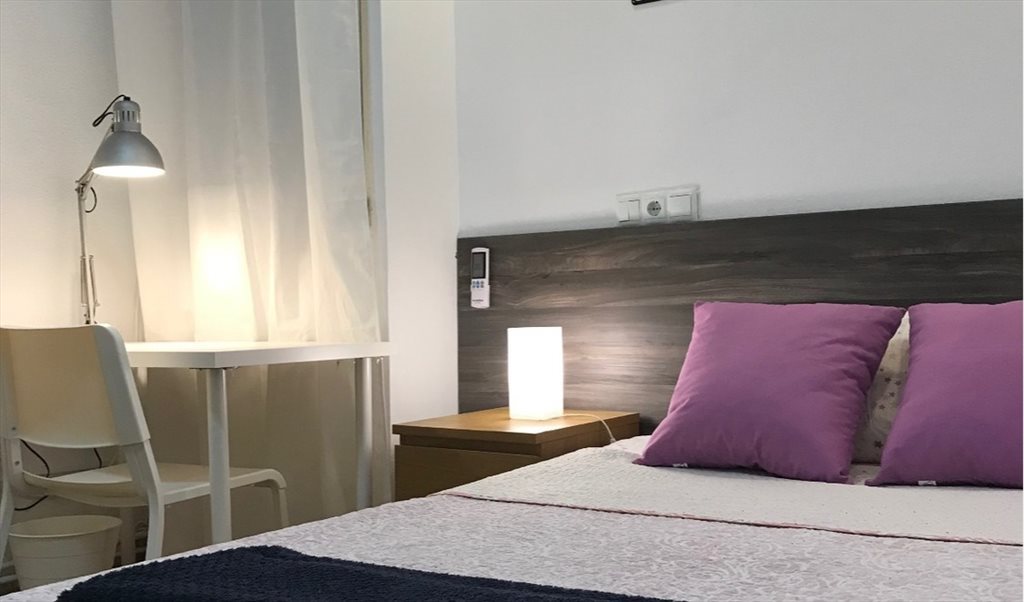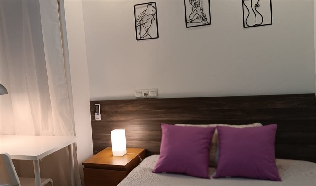La habitación dispone de cama doble canape + colchón viscolétex antiacaros + mesa de noche + lámpara de noche + escritorio + estantería + zapatero + sofá + nevera privada + armario grande empotrado