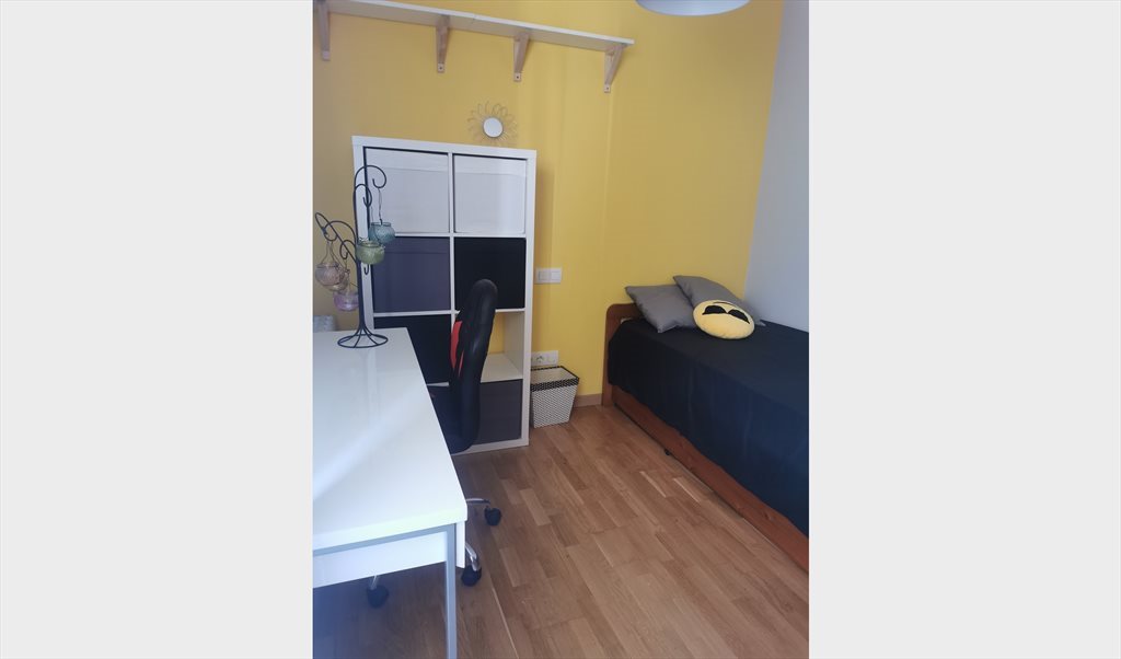 Alquilo habitación individual con dos camas, escritorio, grandes armarios, y pequeña terraza. El baño se comparte con otra habitación y también es grande, con bañera y esta casi nuevo a estrenar. El piso tiene todo lo necesario para vivir. Lavadora, secadora, lavavajillas, microondas, etc.