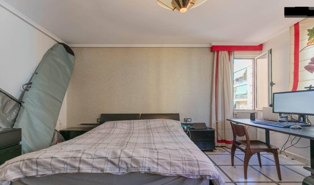 Se alquila habitación para una sola persona trabajadora y limpia en piso compartido en Montolivet, Valencia. Ventana interior al patio, luz natural, con armarios, escritorio y cama individual.