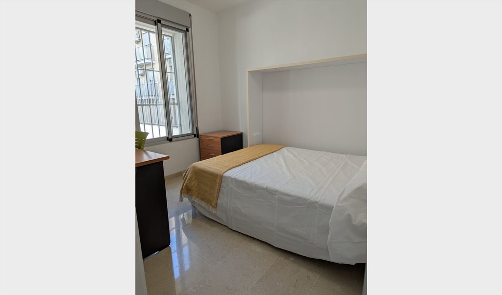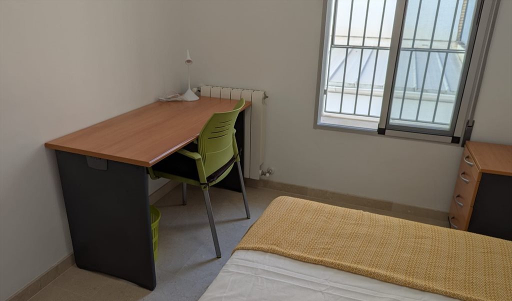Smart tv de 32" Cama doble con colchón en buen estado Armario empotrado amplio Escritorio con silla y lámpara Ventana grande con persiana y buena iluminación natural