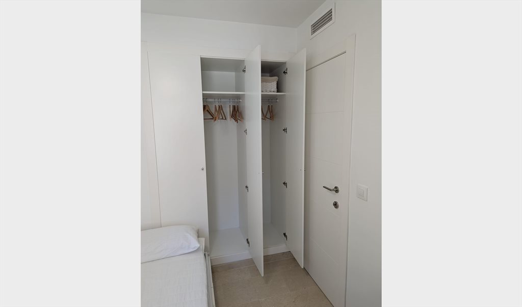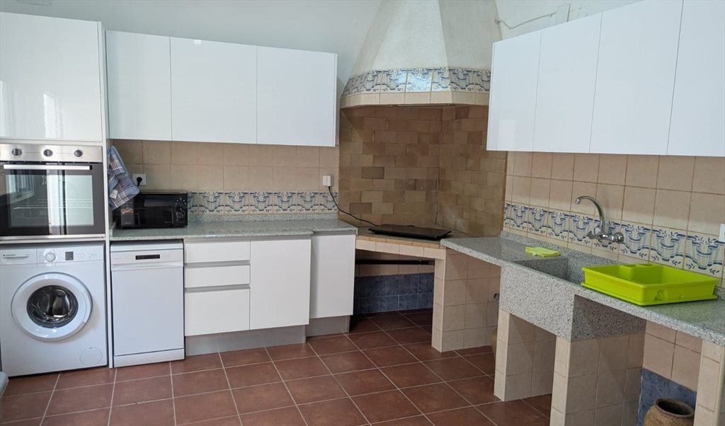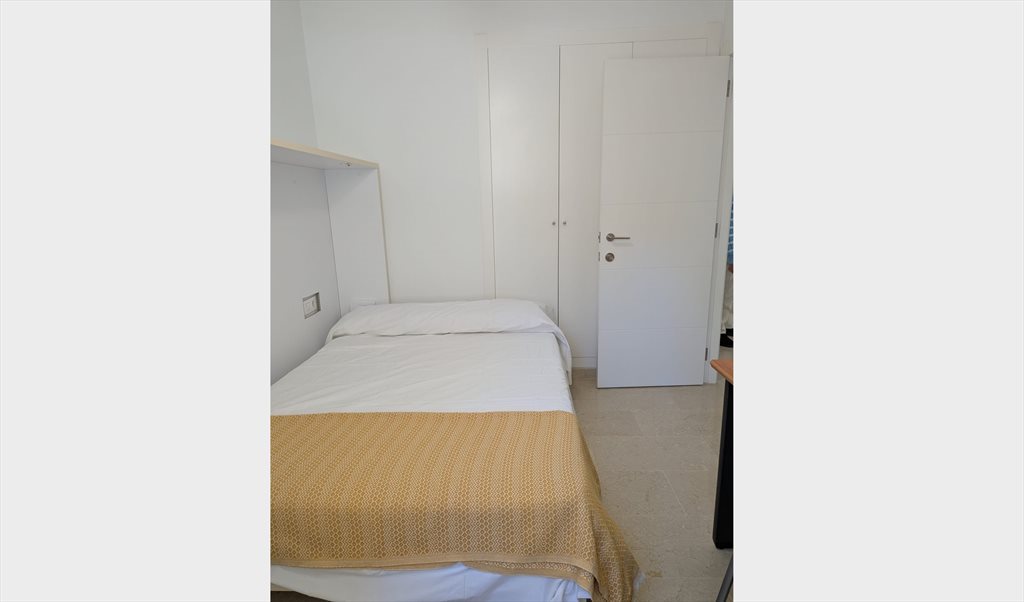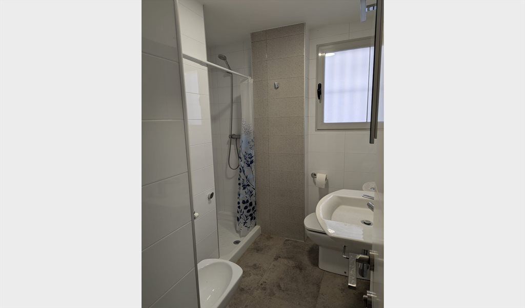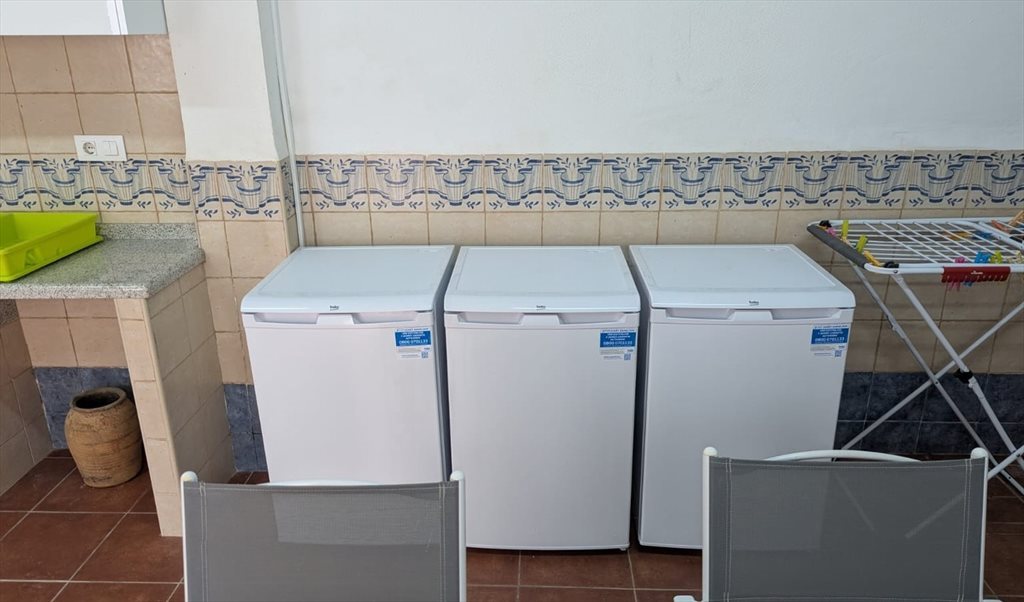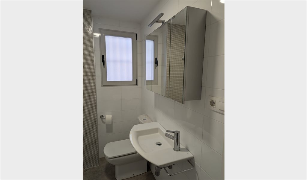 Cocina equipada: vitrocerámica, horno, microondas, lavavajillas, lavadora y campana extractora Nevera personal exclusiva para el inquilino de la habitación Zona de estar en la cocina con televisión de gran formato Terraza exterior con mesa, sillas, banco y tendedero Baño con ducha, buena presión de agua y agua caliente Aire acondicionado y calefacción central en toda la vivienda